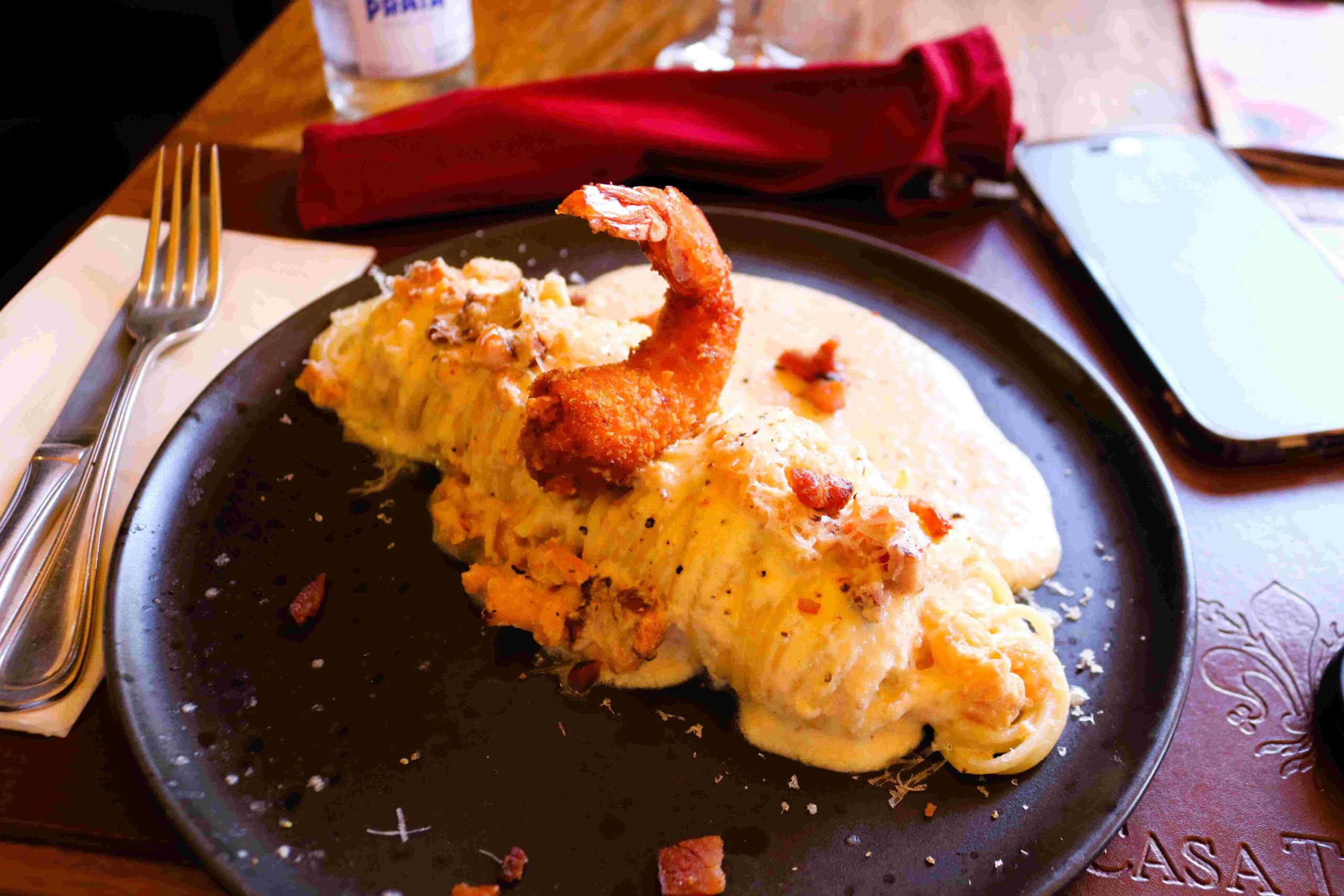 LEGENDA – Camarão Alla Carbonara Guto da Acim, feito com espaguete, camarões, fonduta de queijo e parmesão, concorre ao festival
